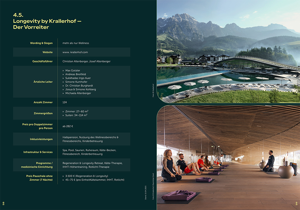Im neuen Trendreport der Prodinger Tourismusberatung beleuchte ich ausführlich die Historie – vom klassischen Wellness zum modernsten Longevity-Treatment – die Business-Backgrounds – vor allem in den USA – die Pioniere und Stars der Szene sowie die möglichen Strategien und zielgruppen-spezifischen Ausrichtungen für jene Hotels, die eine sinnvolle Ergänzung zu den bereits etablierten wie neu eröffneten Medical Resorts am Markt bieten wollen. Denn jenseits aller Gerätschaft & Tools bedeutet Longevity auch persönliche Entwicklung in Richtung Selfmastery. Dazu fünf Interviews mit Ärzten, Hoteliers und Hotel-Entwicklern und eben den Biohackern.